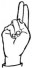 На ћирилици написано МОМИРА ЂАКОВИЋ састоји се из 13 слова [?]. Исписано ћириличном једноручном азбуком за глувонеме: